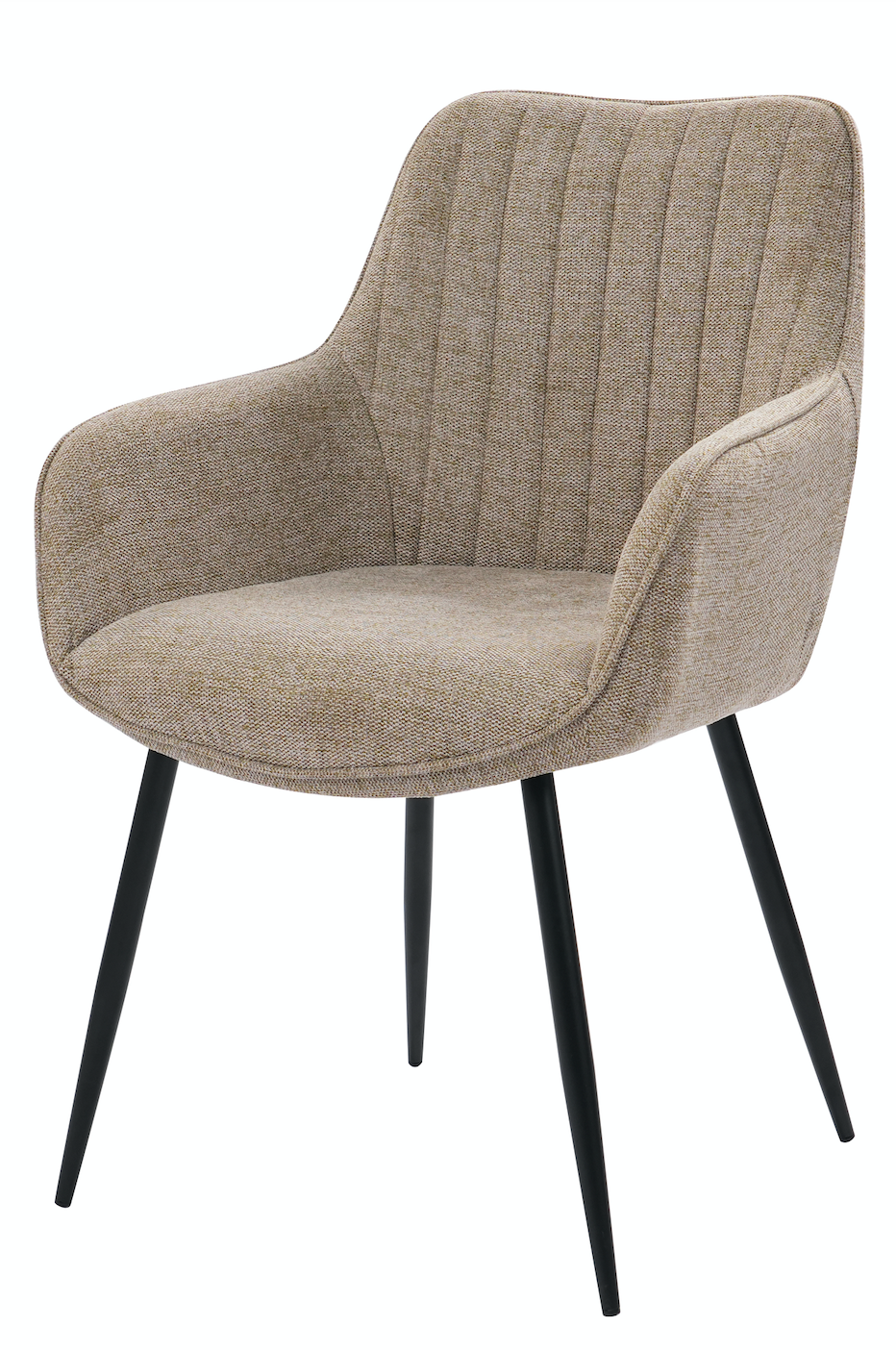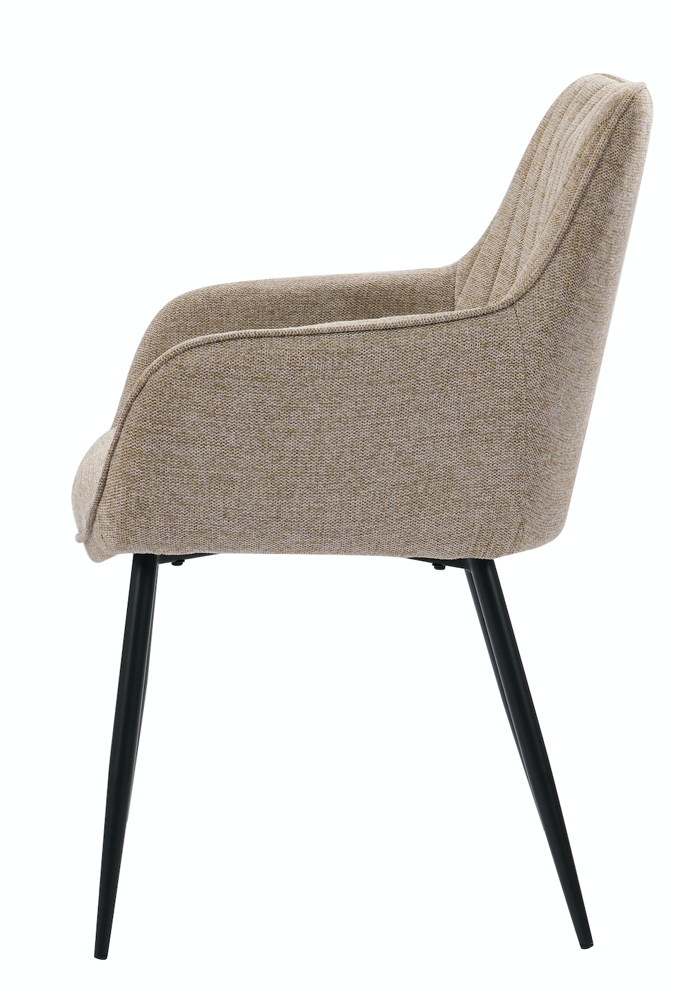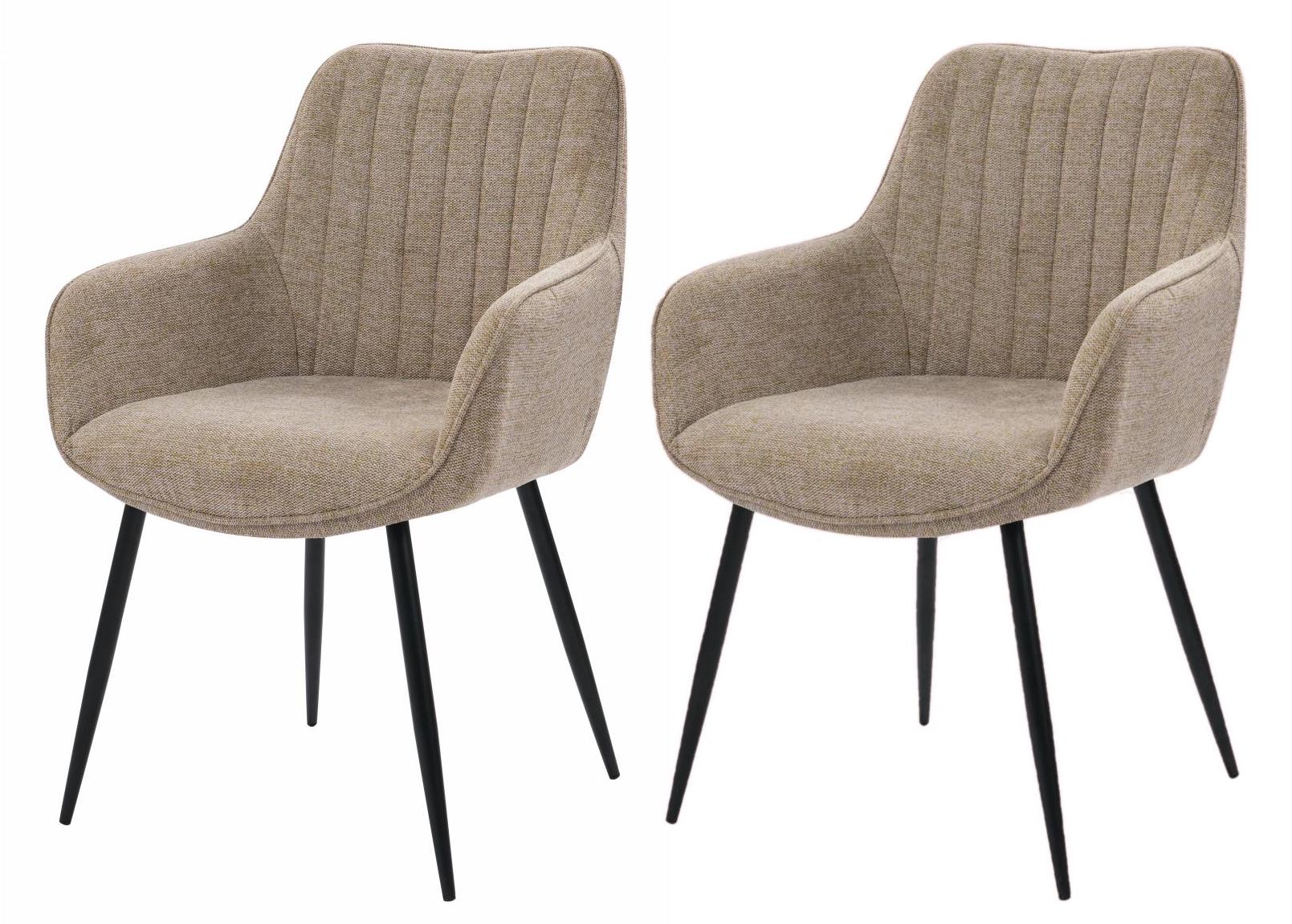 Esszimmerstuhl mit Armlehnen | Stoffbezug beige| 110,5 mm Sitzpolster | Metallbeine schwarz