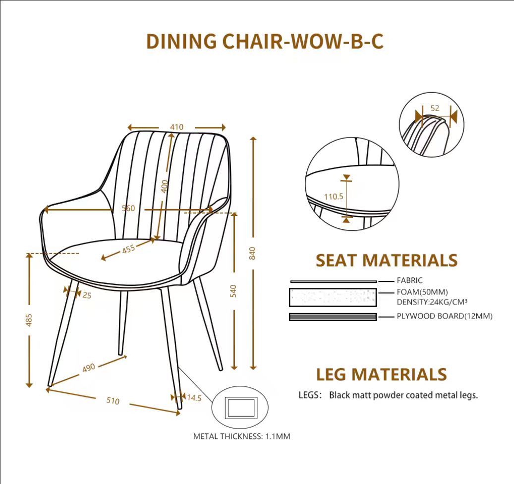 - Stabile Konstruktion: Schwarze Metallbeine und stabile Sitzbasis.