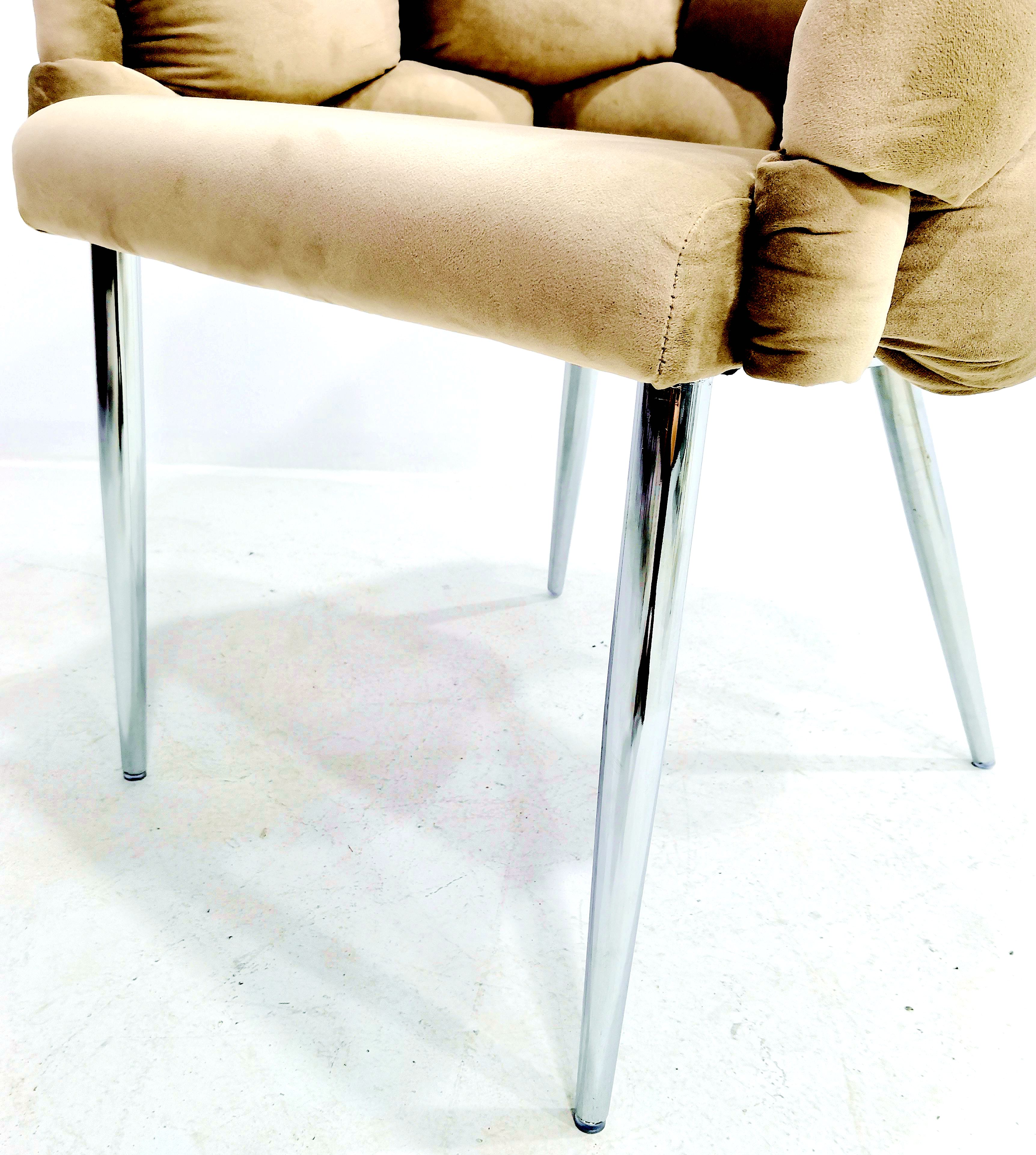 Sessel Polsterstuhl Samtbezug gepolsterter Esszimmerstuhl Metallfuß beige