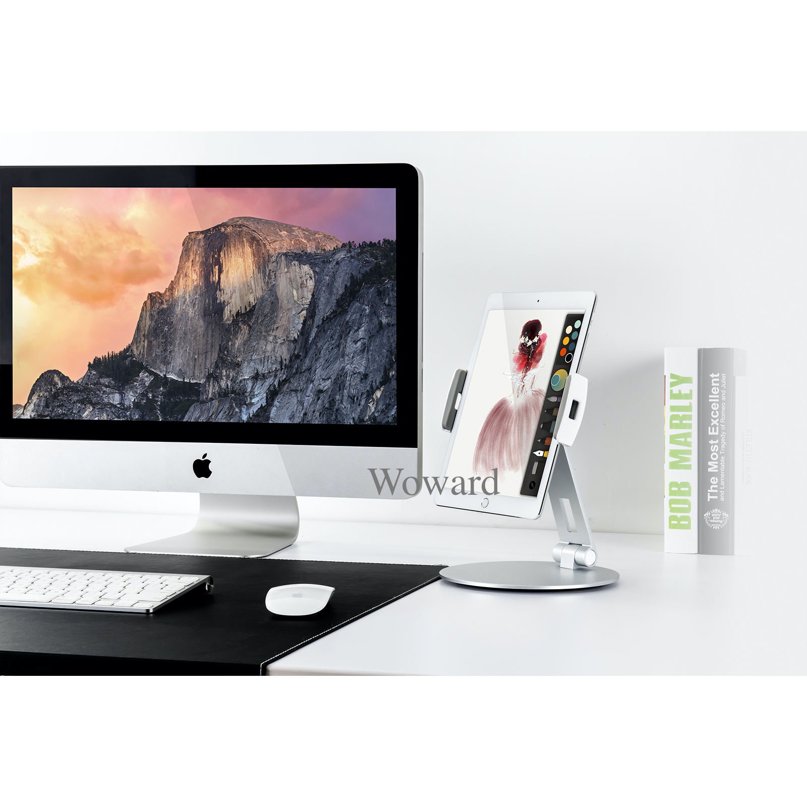 Tablet & Handy Ständer Halterung aus Aluminium WOW-THAS Silber Höhenverstellbar 360° drehbar